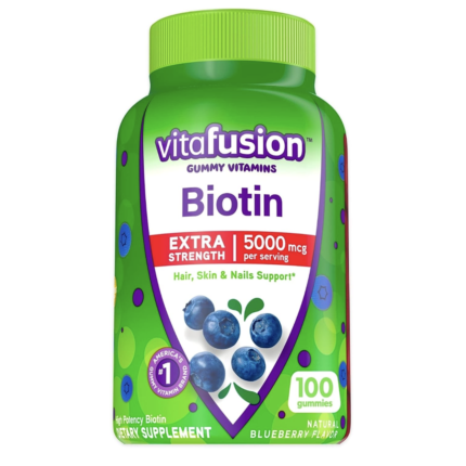 vitafusion Extra Strength Biotin Gummy Vitamins, Berry Flavored, 5,000 mcg Biotin Vitamins, 50 Day Supply, 100 Count