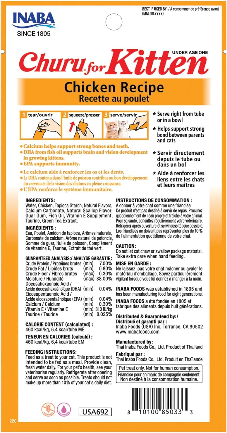 INABA Churu for Kittens, Grain-Free Creamy, Purée Lickable Cat Treats, 0.5 Ounces Each, 24 Tubes