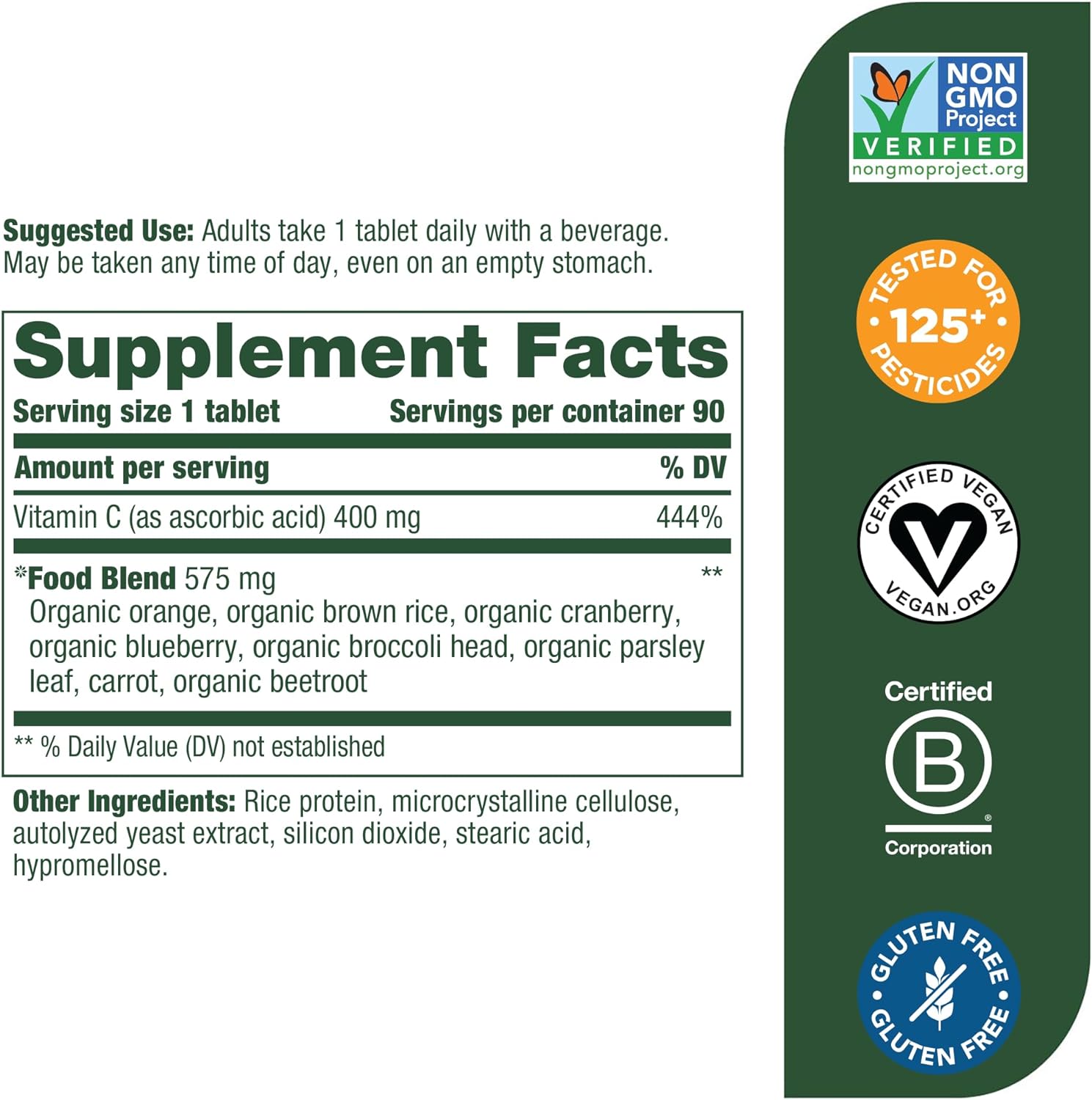 Immune Support Supplement and Support for Cellular Health with 400mg Vitamin C Plus Real Food – Vegan, Kosher, and Non-GMO – Made Without 9 Food Allergens – 90 Tabs